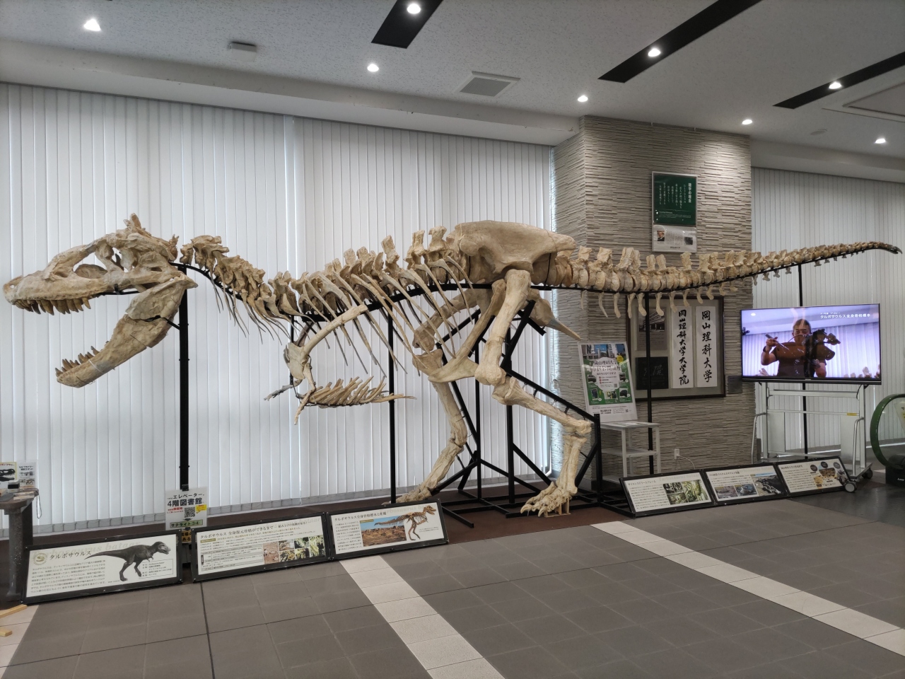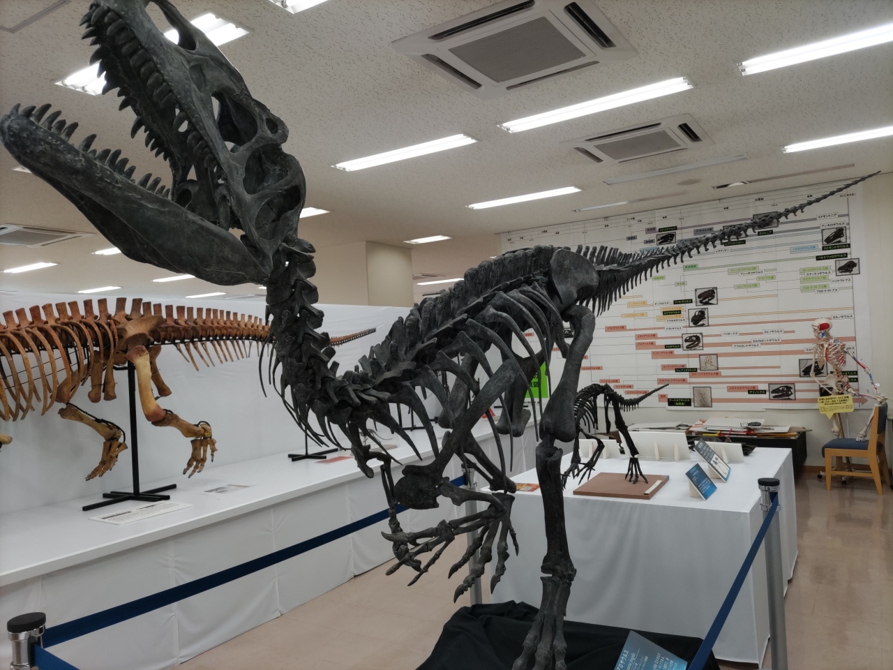 恐竜骨格やそのレプリカを展示、学内を恐竜もとめてロマンの旅。