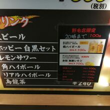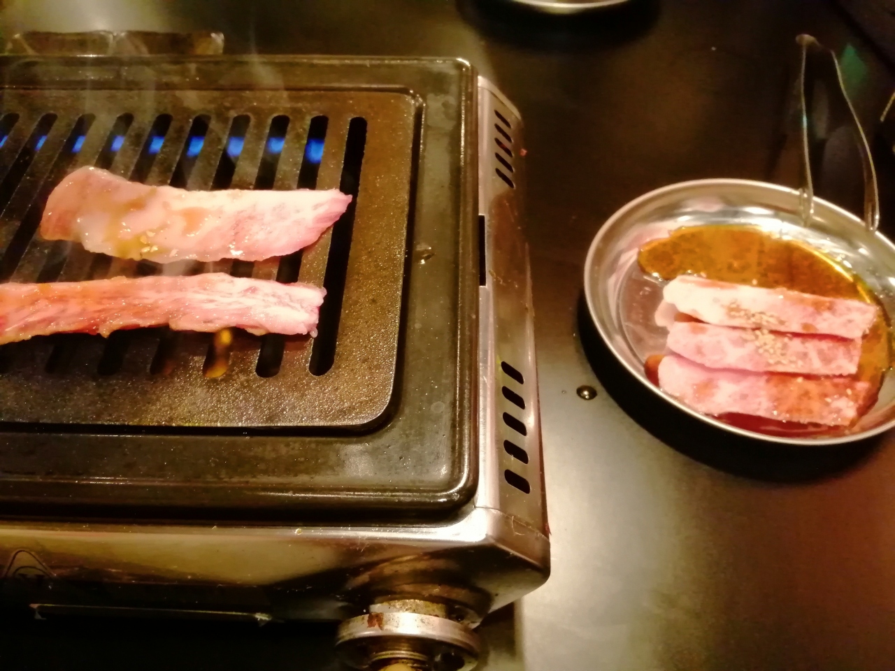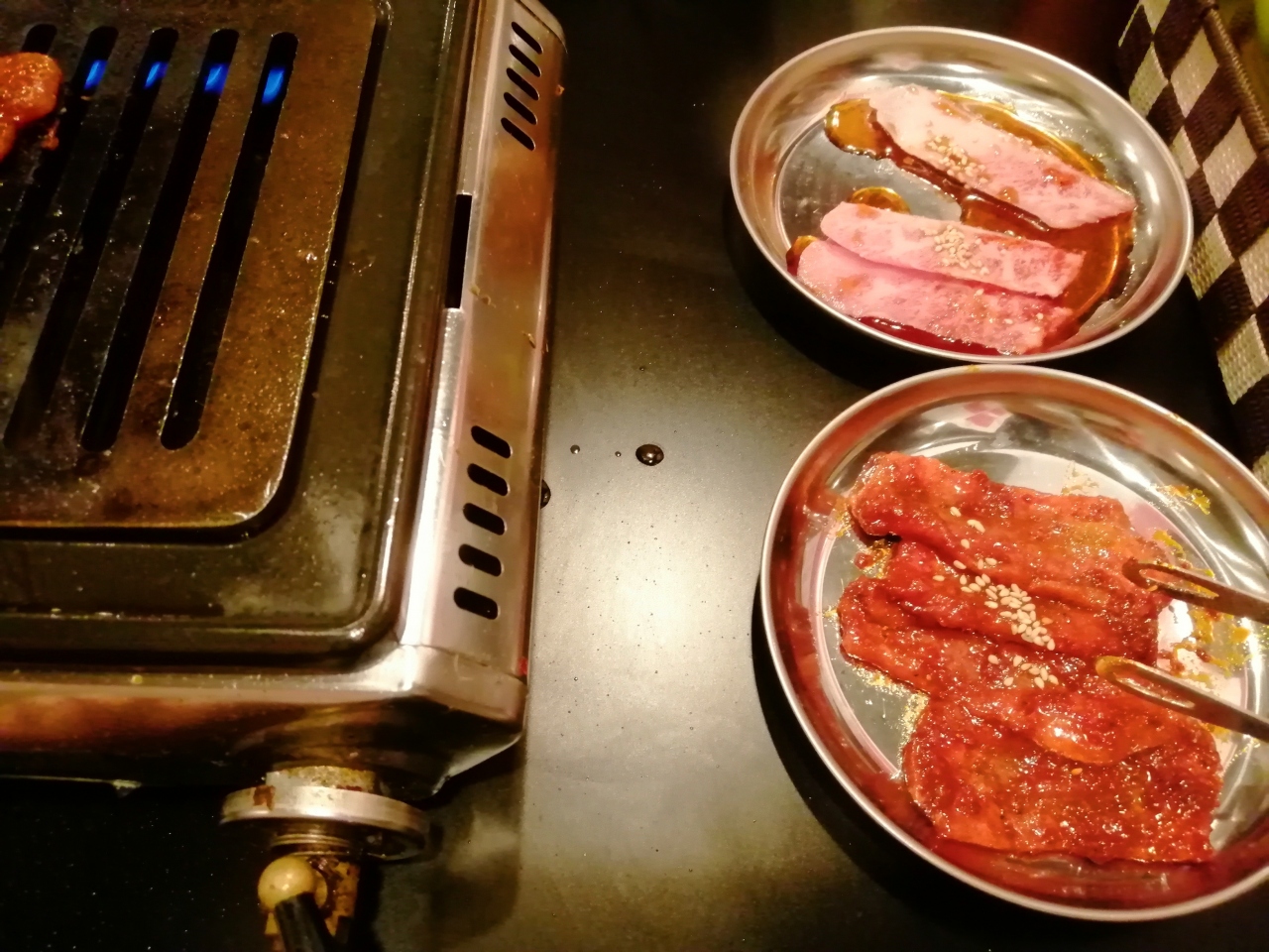 野毛はせんべろでも知られていますが、どのお店も安いということはないので、せんべろが目的ならお店を選んで入る必要があります。ここは野毛の入り口に近いビルの2階で、サワーなど¥100に惹かれて入りました。2人だったので、焼肉も少量ずつ1皿¥500程度でちょうどよかったです。