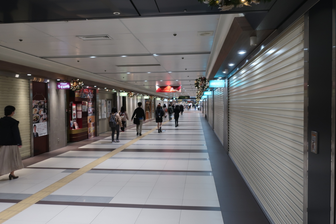 名古屋駅から桜通りに沿って東へ、国際センター駅まで伸びて居る広い地下道です。道幅は広く、歩きやすかったです。名古屋らしく喫茶店が多く入っていました。国際センター駅まで歩いてそこから地上に出ました。大通りを歩くより地下道を歩いたほうがなぜか疲れない気がします。