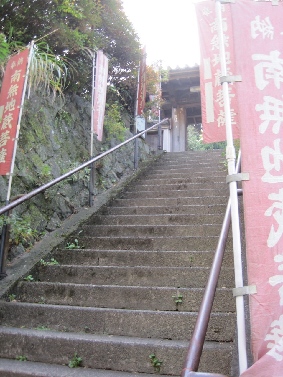 建長寺を少し過ぎた所に急な石段があり、そこを上ると門があります。