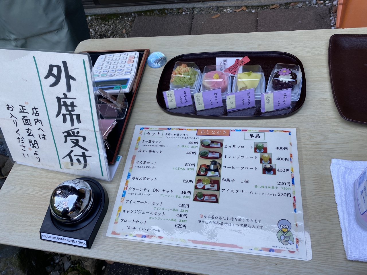 外席があって日本庭園を眺めながら、ゆっくりお抹茶と和菓子を頂くことが出来ます。