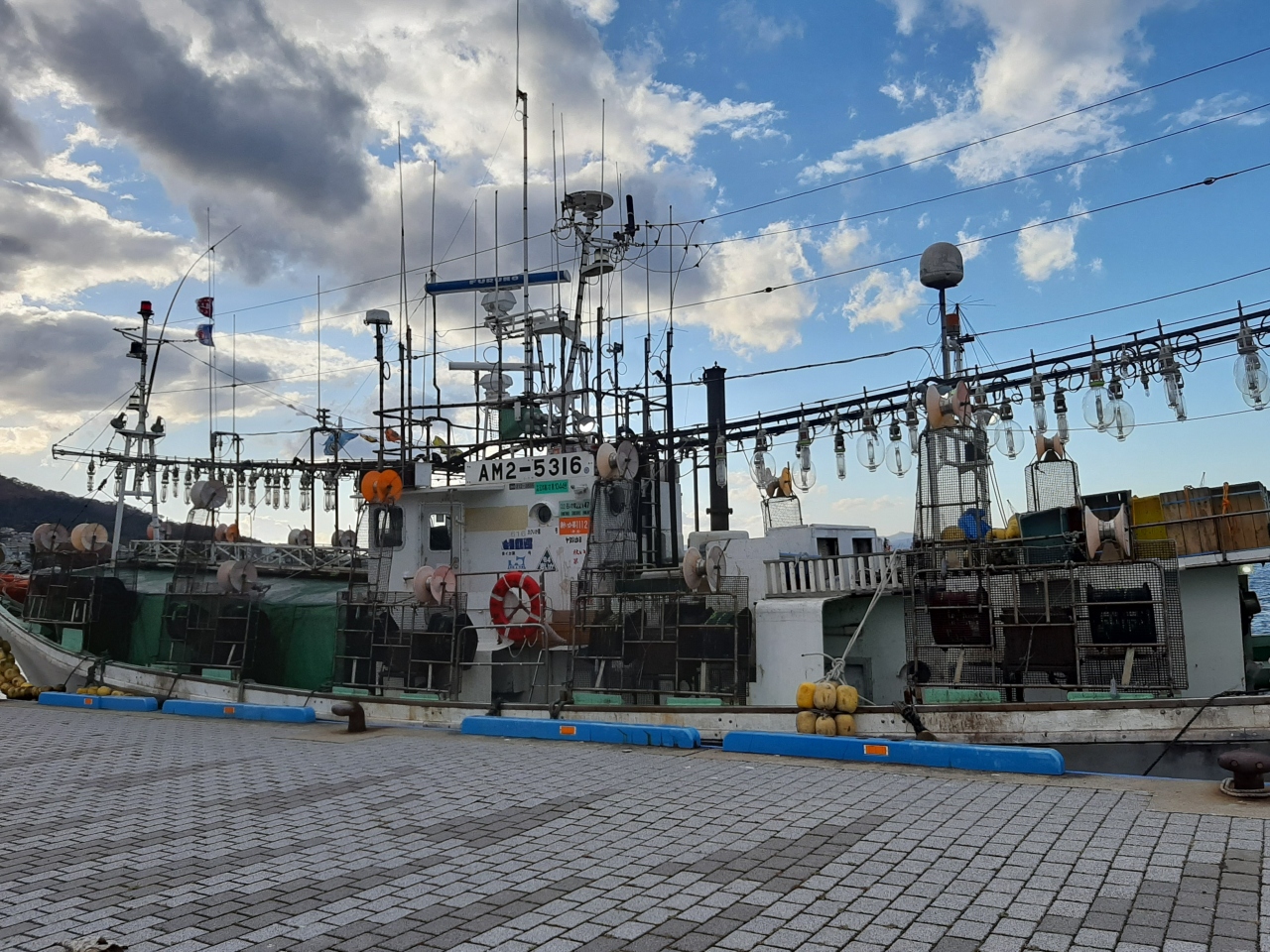 その先の岸壁には、「イカ釣り漁船」2漕が停泊していました。 それを見られたのが、よかったです。