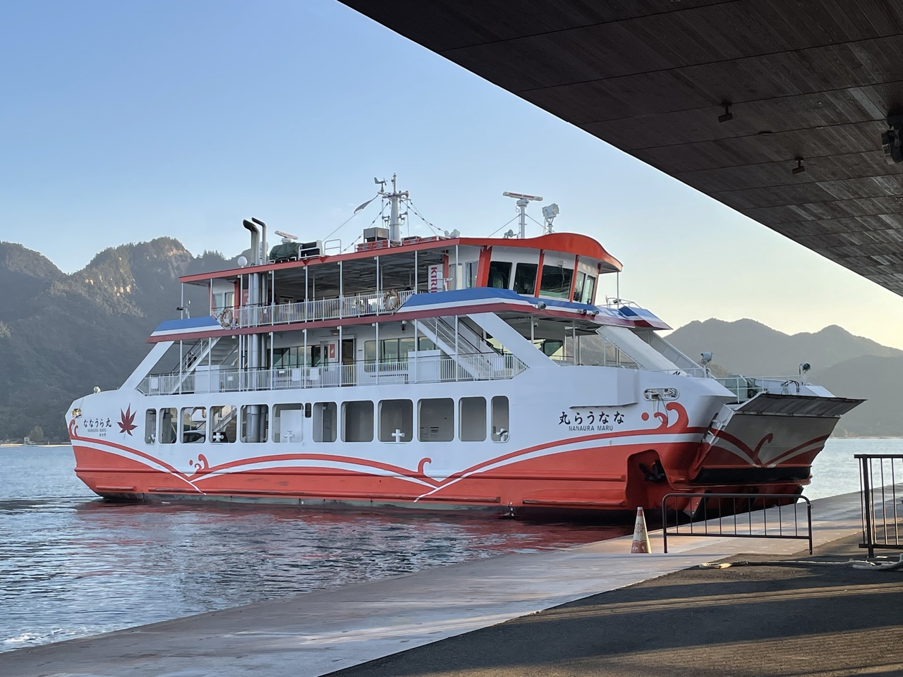宮島口と宮島を結ぶJR西日本が運航する航路です。同区間を運航する宮島松大汽船の船に比べ、船はひとまわり小さく、自動車航送も規模は小さくなっています。松大より厳島神社よりの航路のため、大鳥居を始め眺望はお勧めです。
