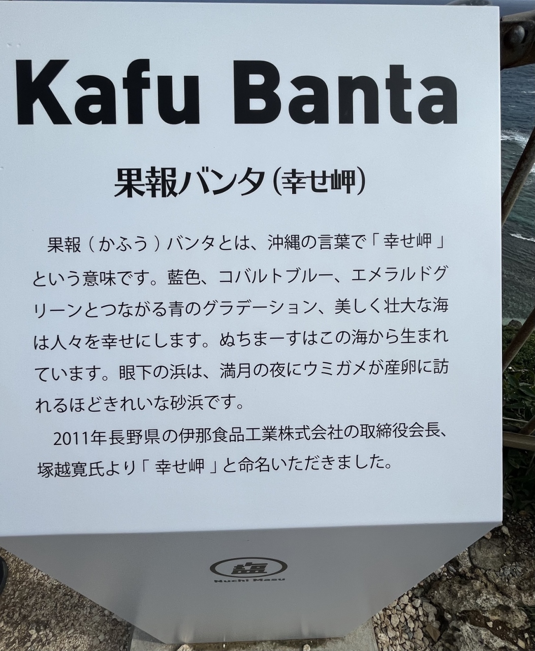「地球の歩き方」が 世界に誇れる絶景スポットベスト1として 紹介。沖縄方言で 幸せ(カフー) 岬(バンタ)