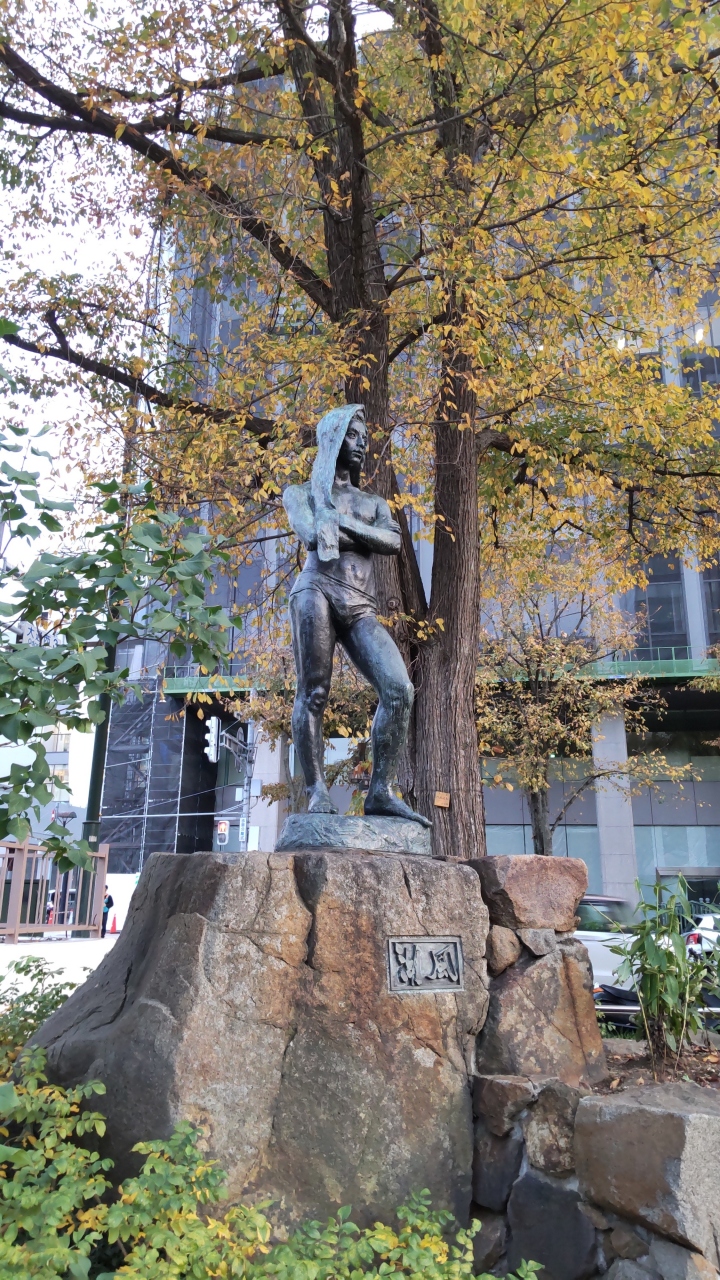 滋賀県出身の芸術家「山田良定」故氏の強い意志を持って佇む若者を表した像で、北洋銀行本店新築、大通り公園緑化、地下鉄東西線開通を記念して寄贈した作品。