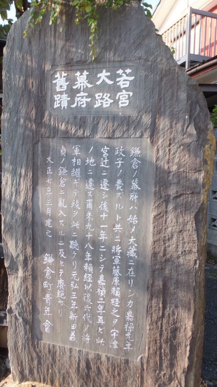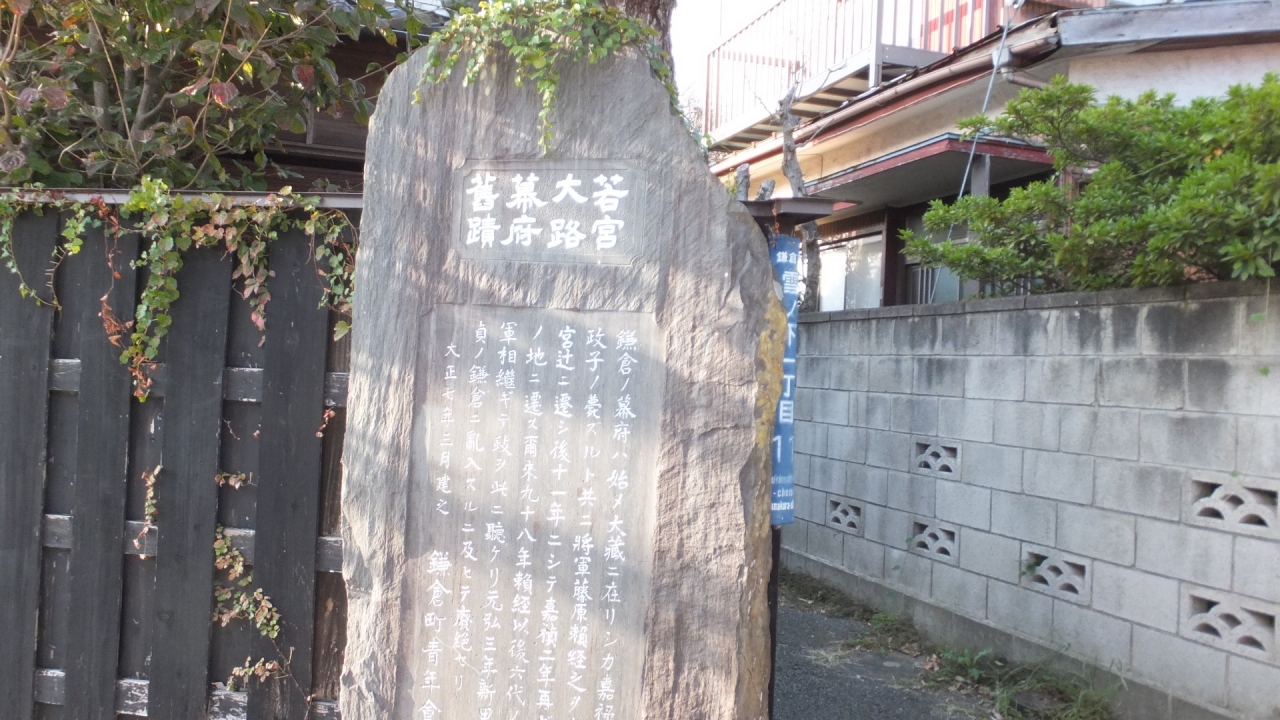 鎌倉駅から徒歩でアクセスできるのですが、若宮大路と小町大路の途中、住宅地の中にあるので少しわかりにくい場所でした。鎌倉幕府の中心となった場所で、もともと大蔵幕府と呼ばれていた場所ですが、残念ながら現在は建物などは残っておらず、大きな石碑のみでした。