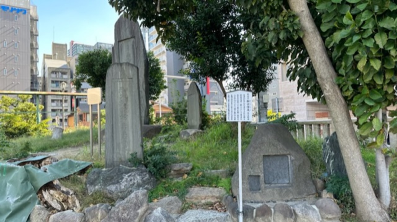 折口信夫歌碑 幼き春は、大阪メトロ四つ橋線大国町駅から徒歩数分、敷津松之宮 (大国主神社)境内に設置された歌碑です。国文学者・折口信夫がこの周辺で生まれた縁から建てられました。
