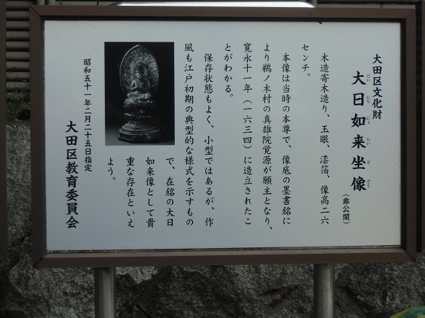 説明板によれば3つの大田区文化財を有し全て貴重なものですが、いづれも非公開だそうです。