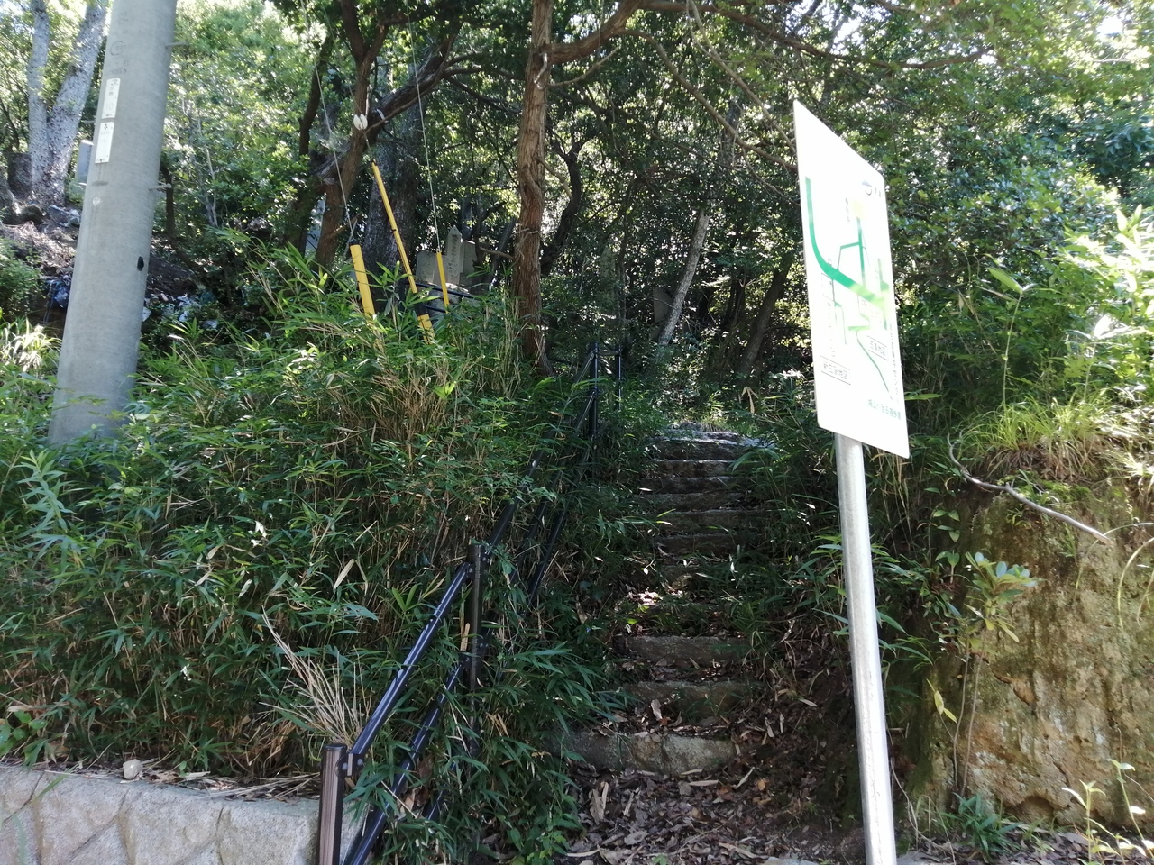 塩飽水軍の本拠地にもなっていた城です。登り口は東小路、専称寺へ上がる階段の30mほど南。登り口の階段を登るといきなり道が途絶えますがとにかく左方向に進んで下さい。そして道なりに5~6分登ればたどり着きます。しかし由緒看板しかありません。木々に遮られ眺望もなし。冷やかしで行っても楽しくはないと思います。
