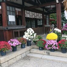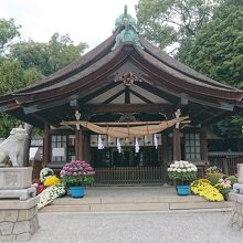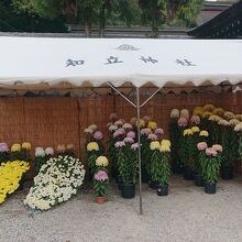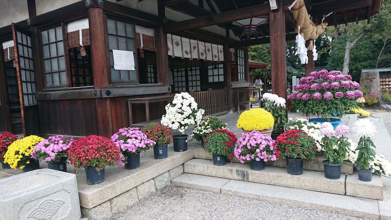 11月中旬の平日の午後3時台に訪問しました。今回の訪問で特に印象に残ったのは、奉納された菊花の展示。拝殿前と拝殿脇にたくさんの種類が並べられていましたが、赤色、黄色、白色、紫色、等々色とりどりで、とても綺麗でした。