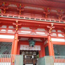 三井寺を参拝した際、その隣に大きな朱塗りの門があったので中に入ってみました。門をくぐるとまず拝殿がありその奥に本殿という配置。本殿をぐるりと取り巻くように回廊があり、これをお百度参りの要領で何周もしてお参りする方法もあるのだとか。ユニークですね。