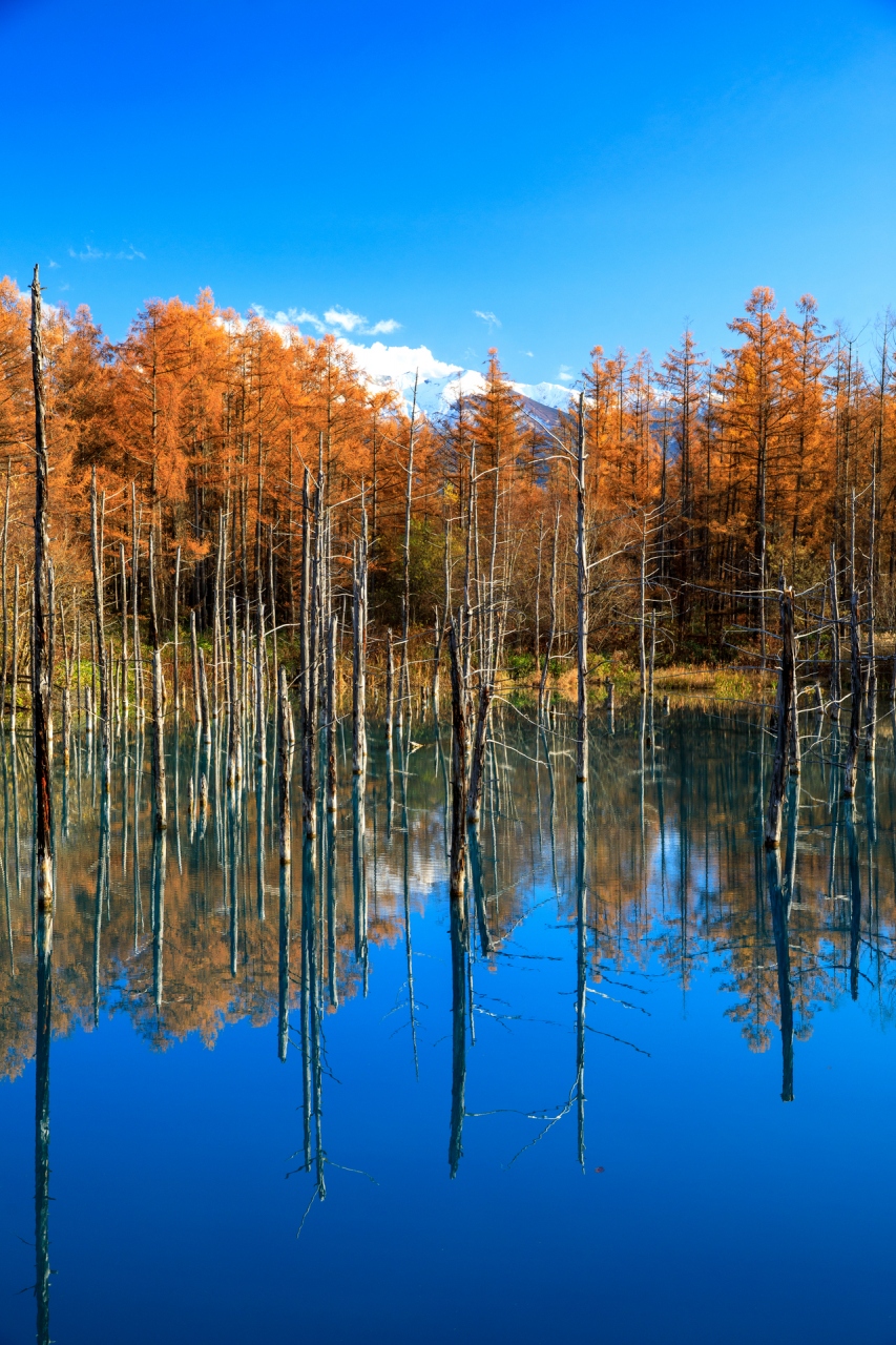 名称通りの青い池を見たければ陽があたってる時間帯にいきましょう。