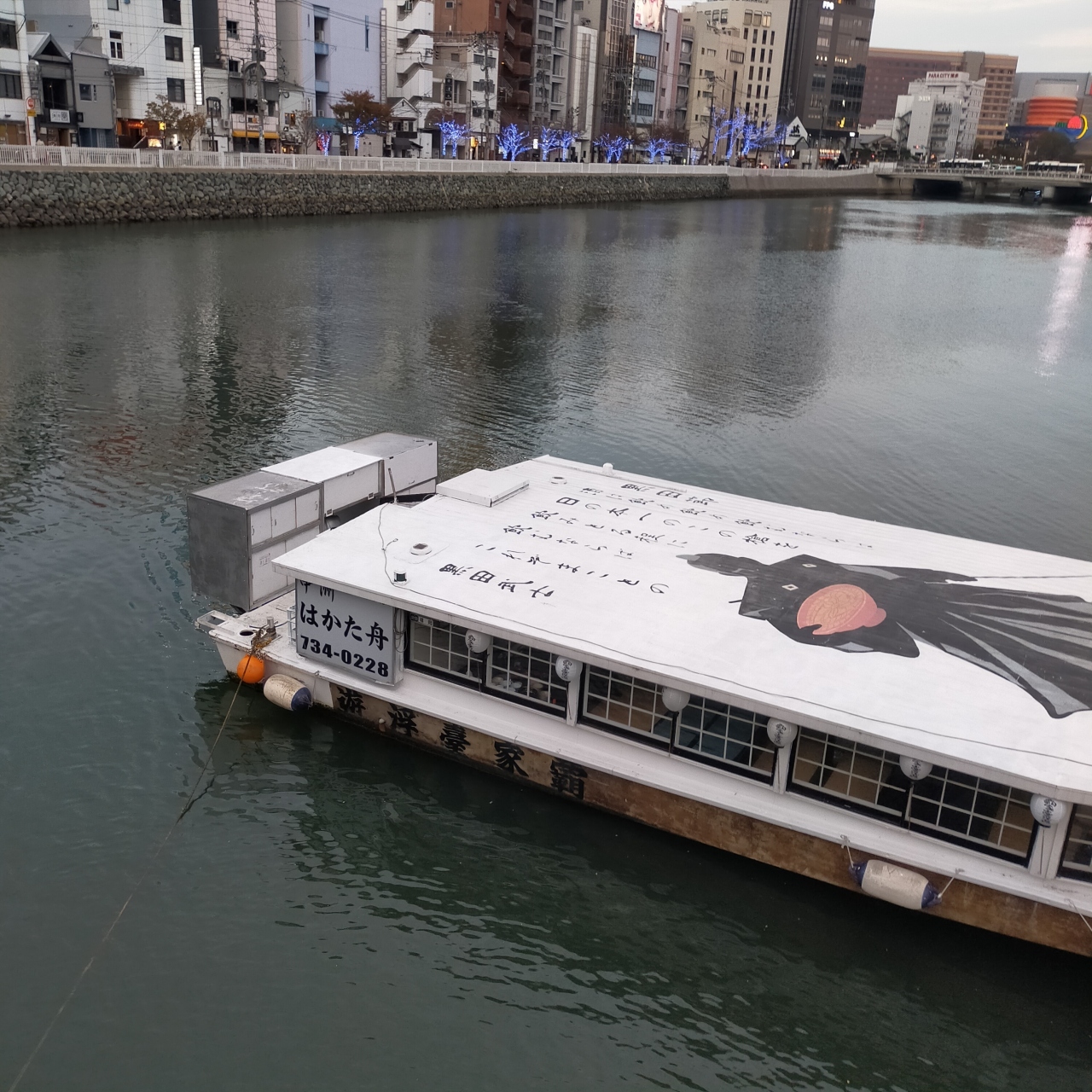 福岡の町中を流れる大きな川には観光船もありました。