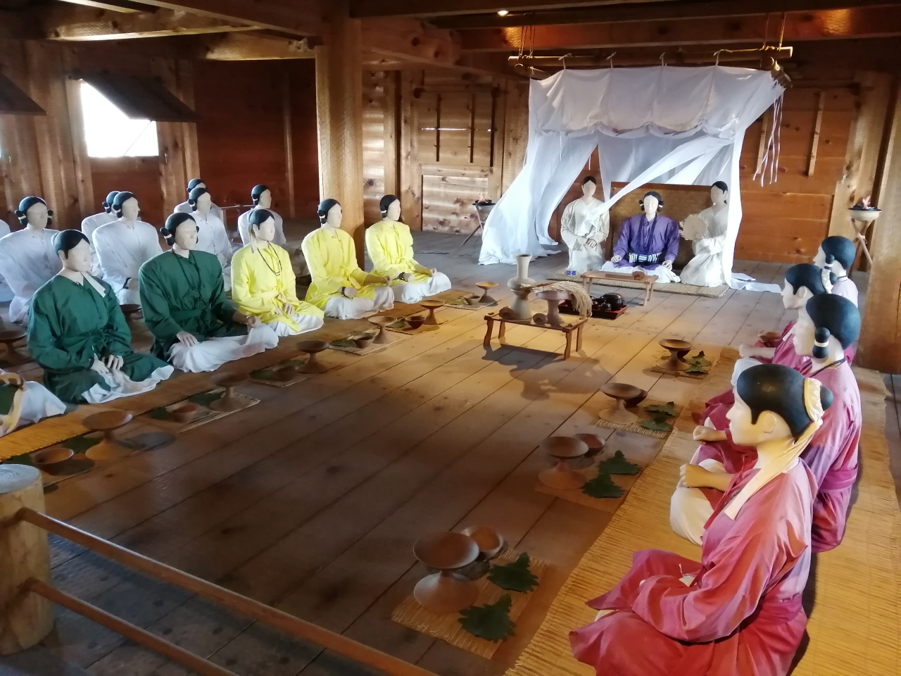 弥生時代の会議や祀りが、マネキンを使って再現されています。