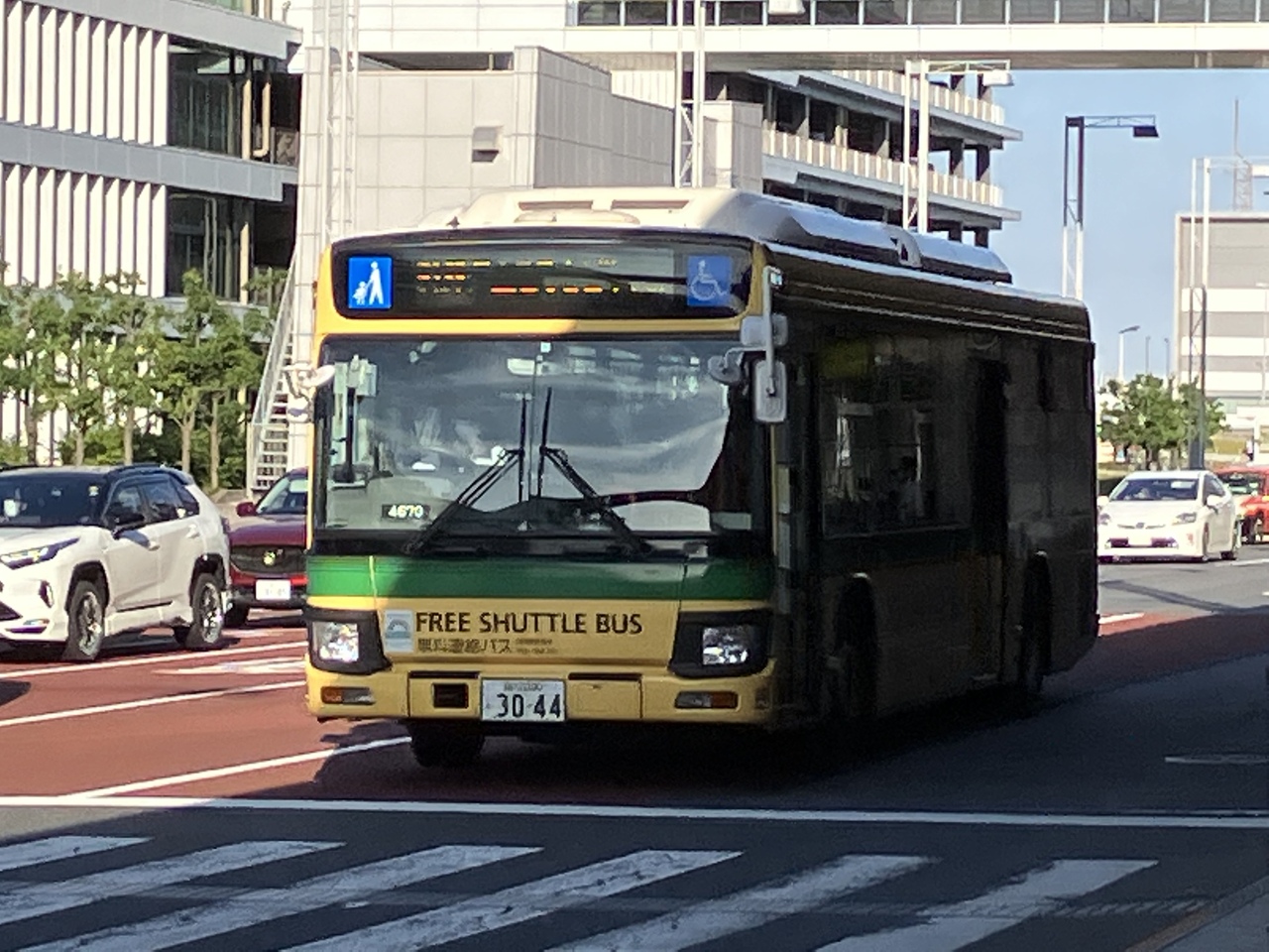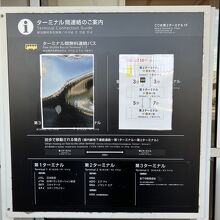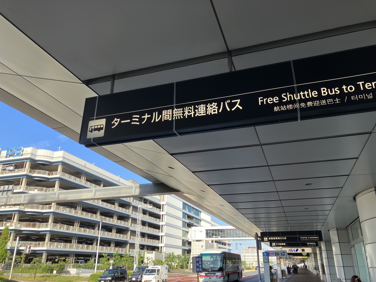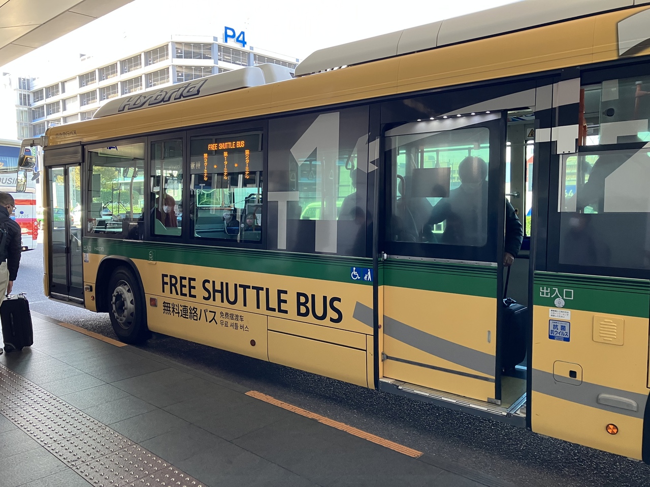 ターミナル2→ターミナル1→ターミナル3のルートは黄色に緑色のライン、ターミナル1とターミナル2を往復する黄色に赤色ラインの2系統の連絡バスが運行されています。バスの車体のラインの色や車体に大きく描かれているターミナル名を見て乗車してください。どちらも無料です。