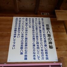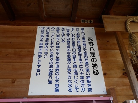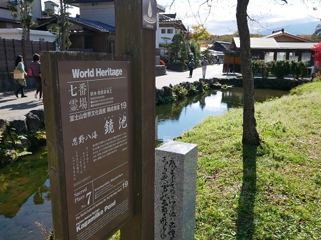 富士山の伏流水に水源を発する湧水池で底抜池、銚子池、湧池、鏡池、濁池、菖蒲池、出口池、お釜池の8つで見学は無料です。8つの池は点在してますが比較的近い場所にあり見学に時間はかかりません。ただし、出口池だけが少し離れた場所となっているので今回は見学をパスしました。また鯉の池は八海とは別らしいですが、その周りにはお土産店や休憩所などが整備されていています。