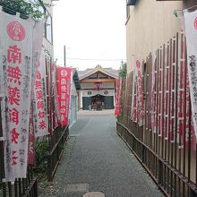 豊川稲荷の門前から伸びる、門前通りから、少し脇に入った所に立地しているお堂です。11月中旬の平日の午後3時台に訪問しました。今回の訪問で特に印象に残ったのは、門前通りからお堂へと向かう通路。旗が立ち並び、趣が感じられました。