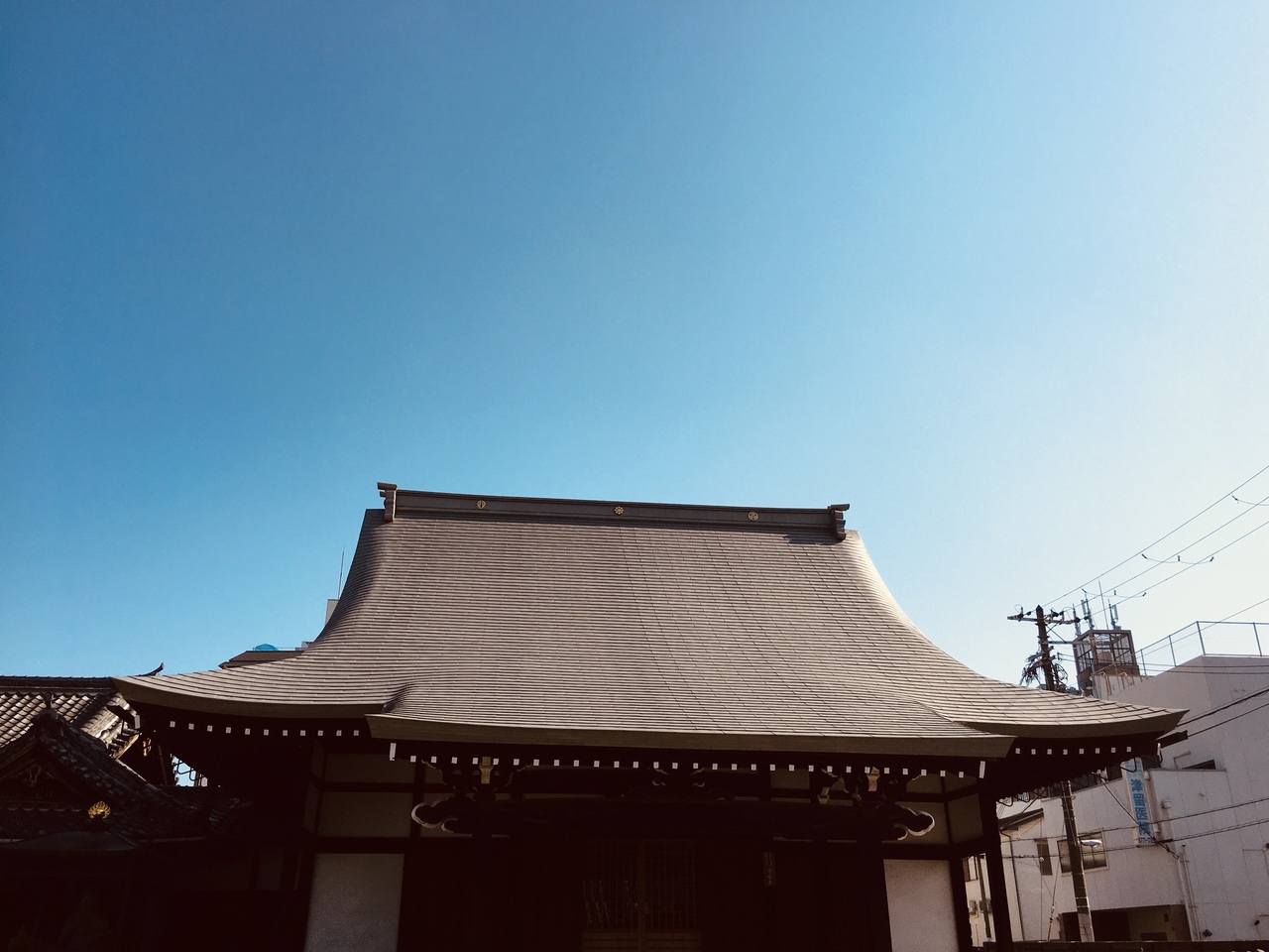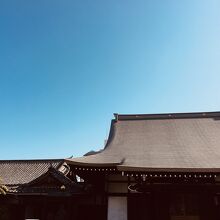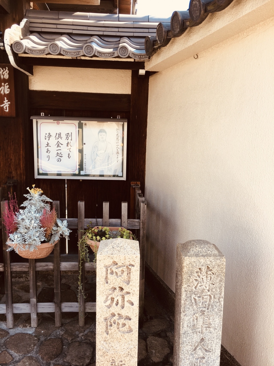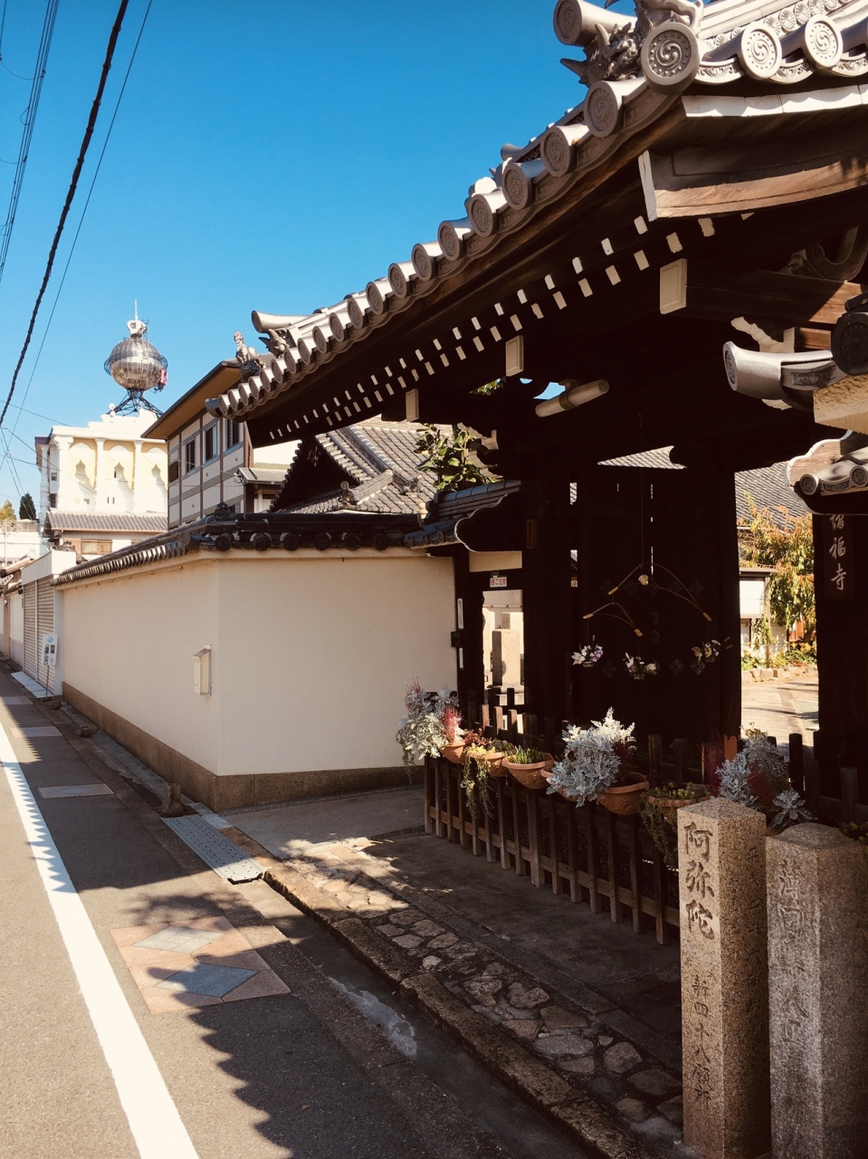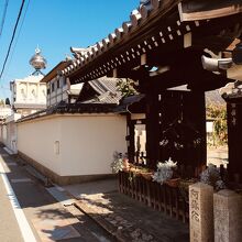 古びた木の門の前には柵があり、一般客は立ち入り禁止のようでした。柵の上にはいくつかの植木鉢が並び、門前の上からも植木鉢がぶら下がっていました。本堂の屋根が大きく、目立っている以外は特に境内は実物はなかったです。