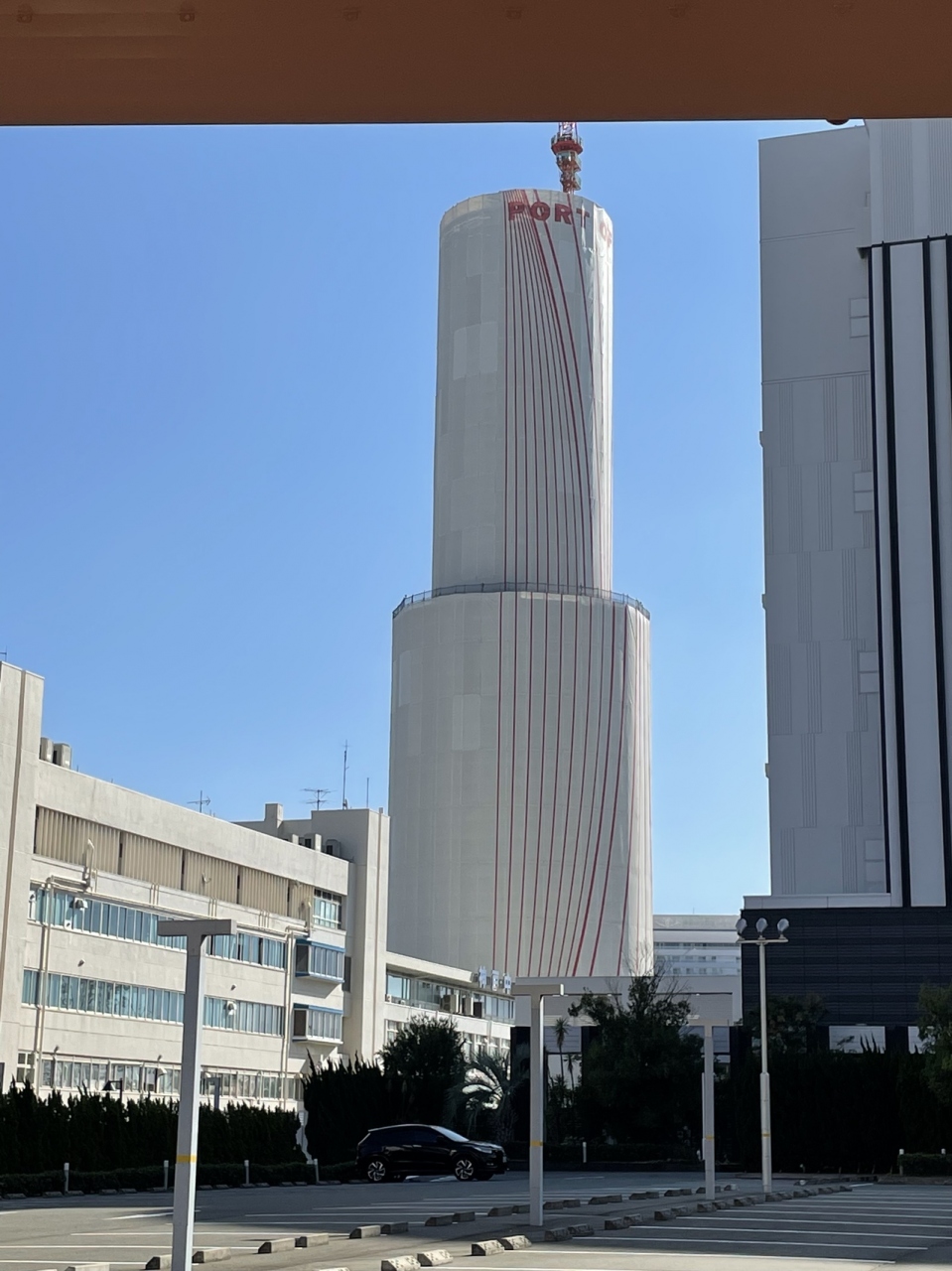 高さ108メートル、港町神戸のシンボル、鼓形の赤いタワーはまだすっぽり覆われて、その姿を見ることができませんでした。耐震補強工事中ですが、再開は2024年春にずれこむようです。改修工事後は新たな展望スペースもできるようです。