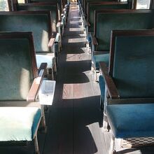 客車内で、蒲郡についての写真展を観覧