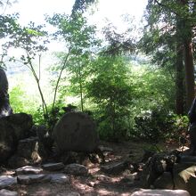 宝珠山の麓に近い場所にある宝物殿の近くにあります。参道を進むと見つけることができますが、地味な存在なので、気が付かないで通過している人が多いと思います。松尾芭蕉が訪れたことで有名な山寺で、句にも詠まれたということから、像が建立されたとのことです。