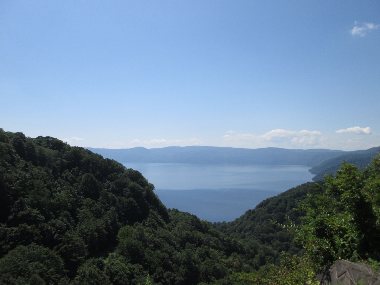 外輪山に囲まれた高地のカルデラ湖です。観光名所「奥入瀬渓流」の源で、周囲46km、最深部327mの日本3位の深さを誇ります。奥入瀬へ抜ける際、ことのほか高いところまで上がったので、きれいな景色を楽しむことができました。