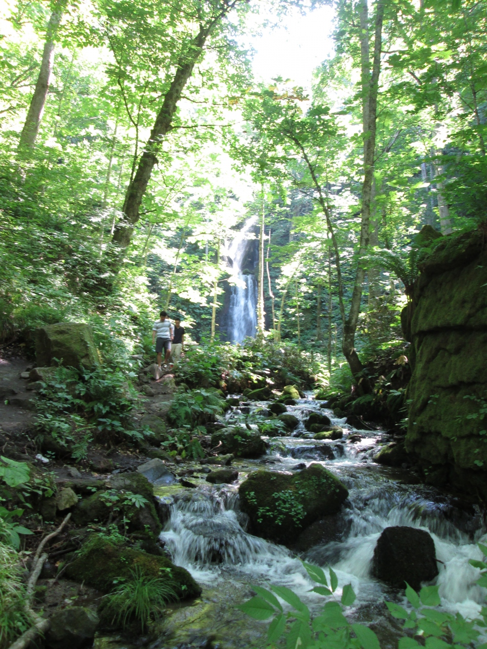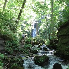 良く見ると流れ落ちる岩が階段上になっていて、それがまた風情を醸し出しているように感じます。数多くある滝の中でも細い水流の滝で4段程の岩から落ちて奥入瀬渓流に注いでいます。