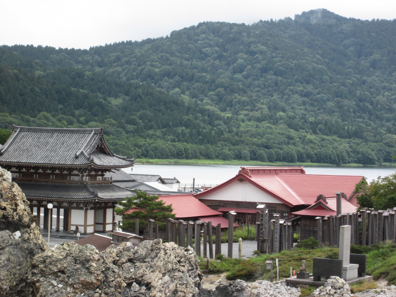 この湖はカルデラ湖で酸性らしいので、湖の香りも違ったのかもしれません。近づいてみると透明度はかなりありました。境内の地獄巡りと呼ばれる硫黄の臭う岩だらけの散策路を抜けた先が、極楽浜と呼ばれる宇曽利山湖の水辺になります。火山ゆえ、湖水の酸性度が高く、植物や動物が生息出来ないせいで、水の透明度が高いのだそうです。