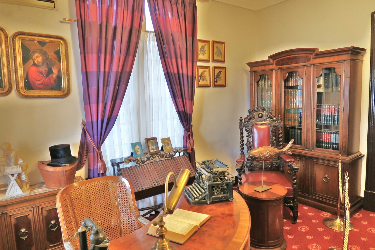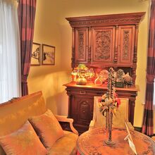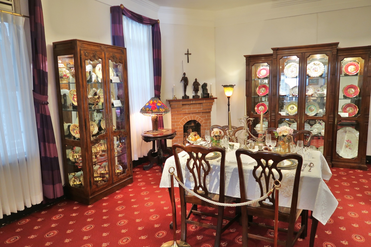 公式サイトには、コロナ禍で平日はお休みと書かれていましたが、洋館の外観だけでも見ようと坂を上りつめたところ、運よく営業していました。うろこの家と山手八番館のみの営業で、1200円でした。うろこの家の前には、アンデルセン童話『青銅のイノシシ』にも出てくるフィレンツェの幸運のイノシシ像のレプリカがあり、やはり鼻がピカピカに光っていました。サンルームには、デンマーク王室の橇が展示されていました。デンマーク王室御用達のロイヤルコペンハーゲンのアンティーク食器コレクション、彫刻が施された重厚な家具、エミール・ガレやティファニーの照明など、豪華なインテリアでした。