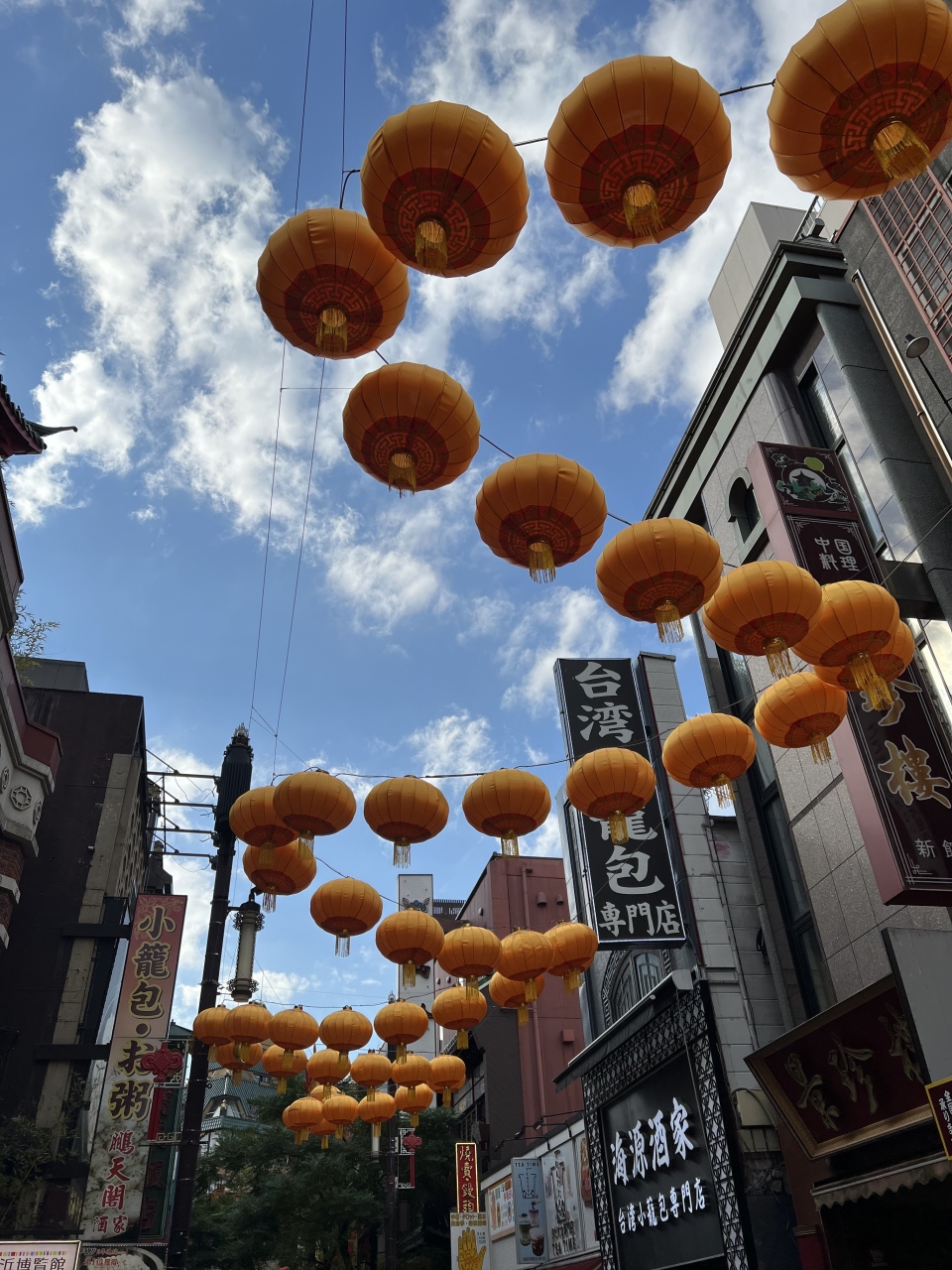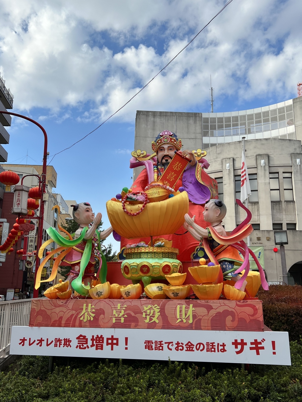 春節の飾り付けでドラゴンが中華街大通りに飾られています。