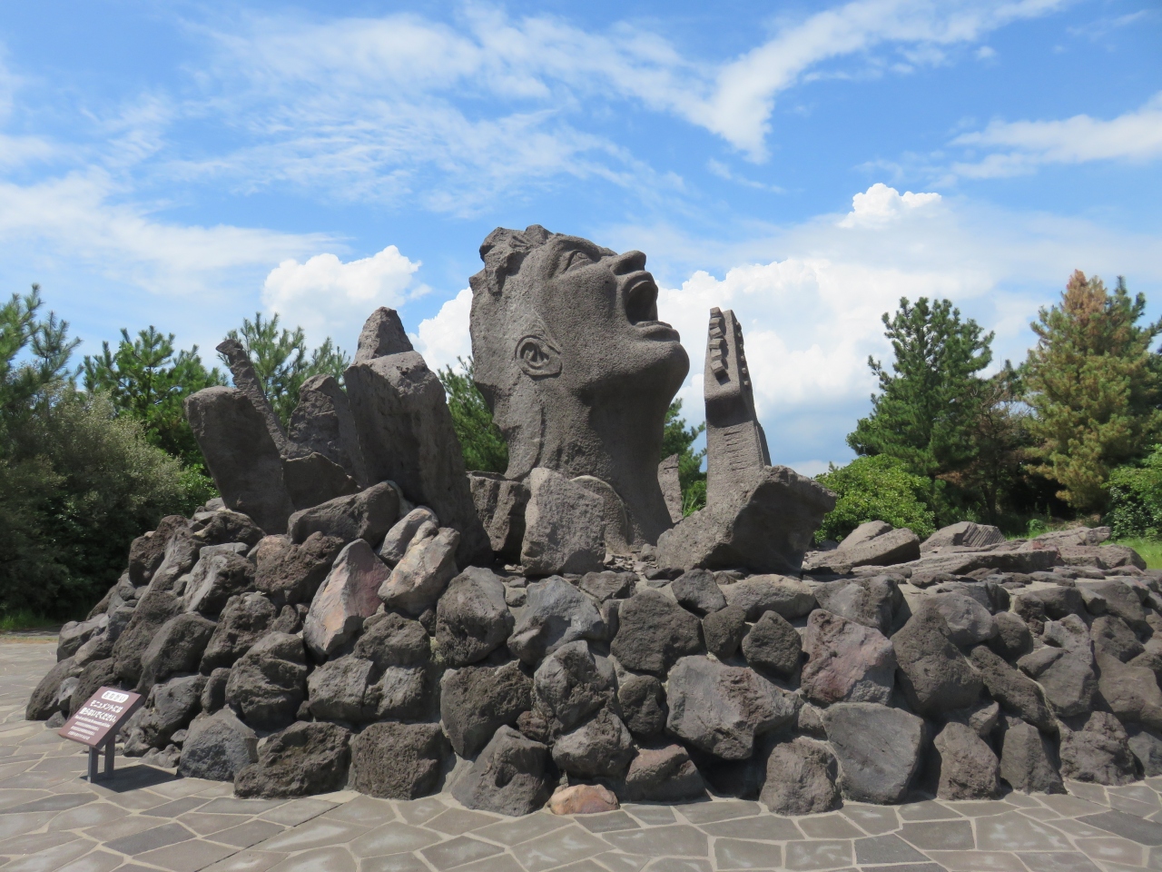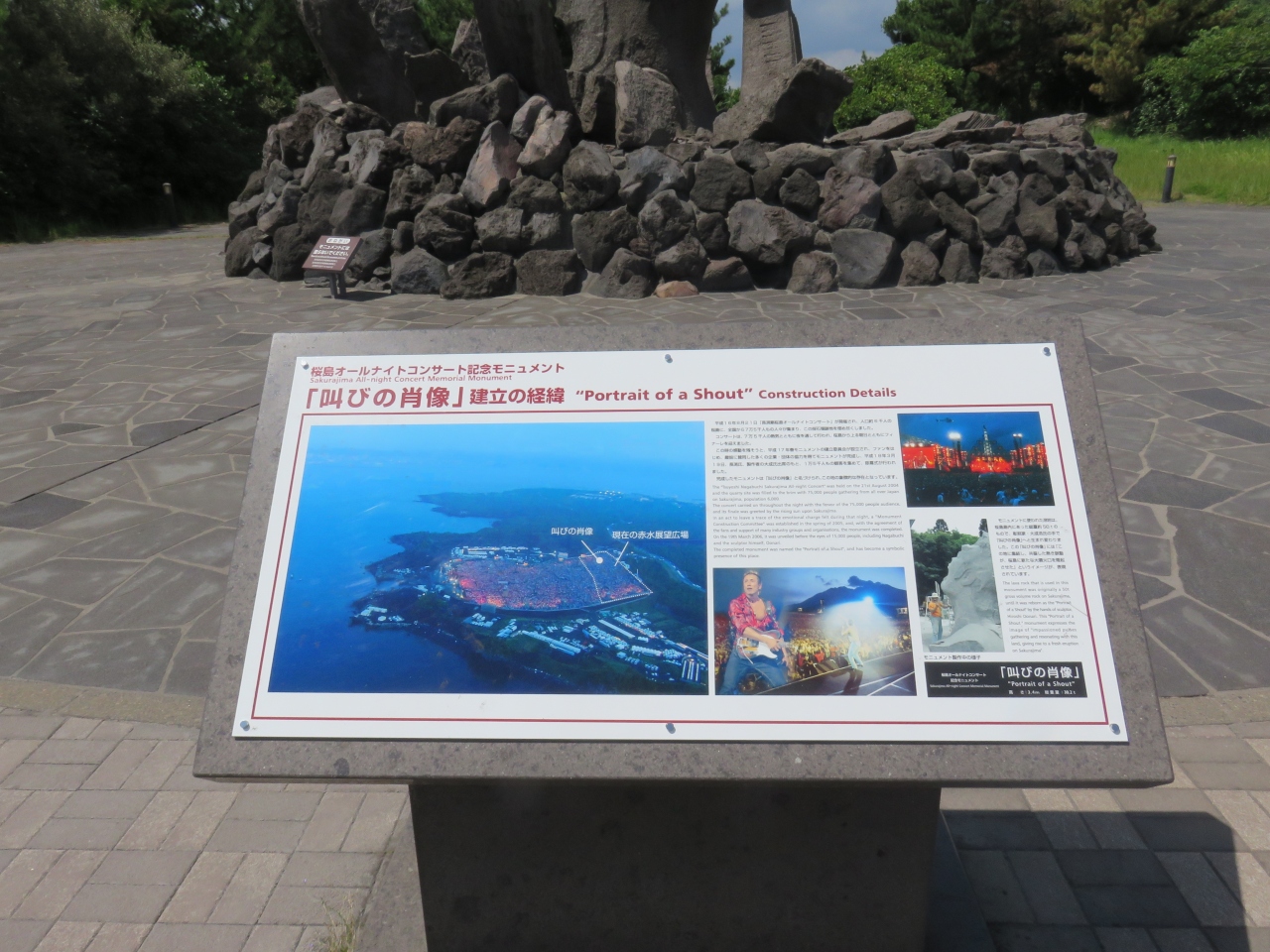 桜島で長渕剛さんのオールナイトコンサートが開催され、そのコンサート会場の跡地を整備して作られたのが、ここ赤水展望広場に大成浩氏により、桜島溶岩を使ったモニュメント「叫びの肖像」も製作されたそうです。迫力を感じる作品でした。