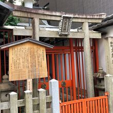 烏丸通り沿いに、ひっそりと鳥居などが建っています。御旅所とは、八坂神社の祇園祭の際、神輿が立ち寄って安置される場所です。こちらの御旅所には、大政所神輿などが立ち寄ったことから、この名前となりました。令和2年、重要文化財に指定されています。