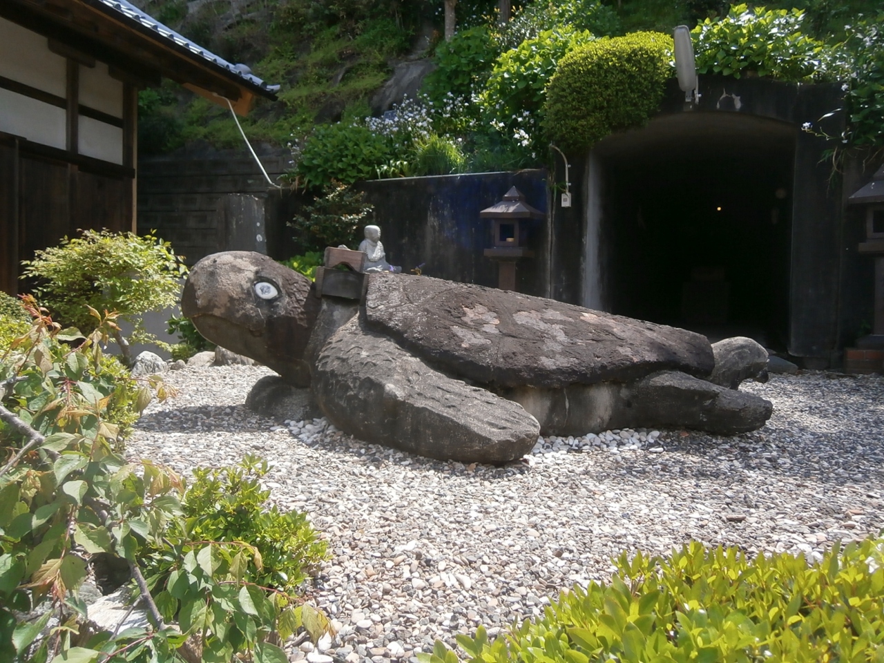 知多四国の番外札所に指定されており、南知多町の小佐集落にある寺院です。地元では「お亀さん」と呼ばれているとのことで、これは海岸に打ち上げられた亀を龍亀大菩薩として祀ったことに由来しており、境内にはたくさんの亀の石像があります。