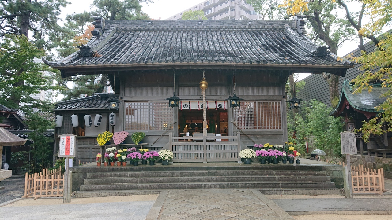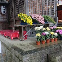11月中旬の休日の午前11時台に訪問しました。当日は、雨の降る悪天候下でしたが、参拝者は一定程度見受けられました。今回の訪問で特に印象に残ったのは、「三河の菊まつり菊花展出展作品」の菊が飾られていたこと。とても綺麗で、菅生神社が、華やいだ雰囲気になっていました。
