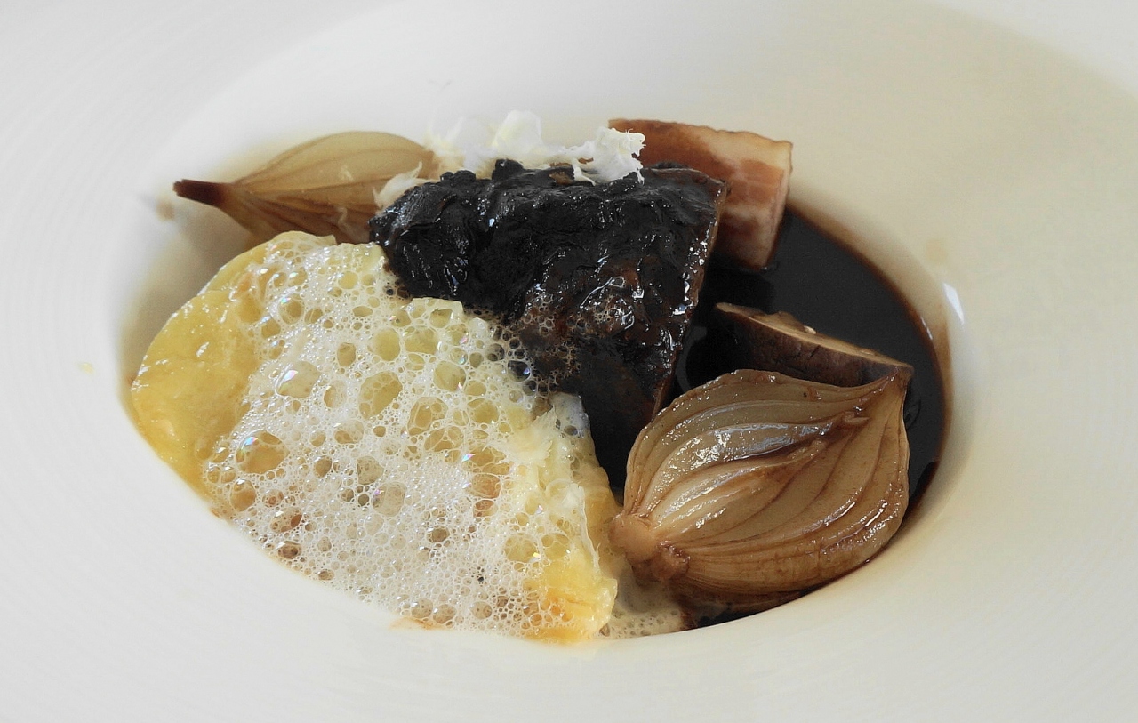 牛肉の赤ワイン煮は、ホロホロとほぐれる柔らかさでワインソースとよくあいます。