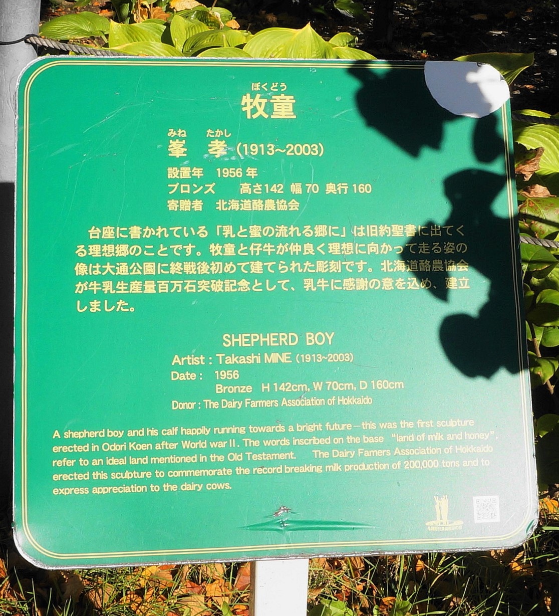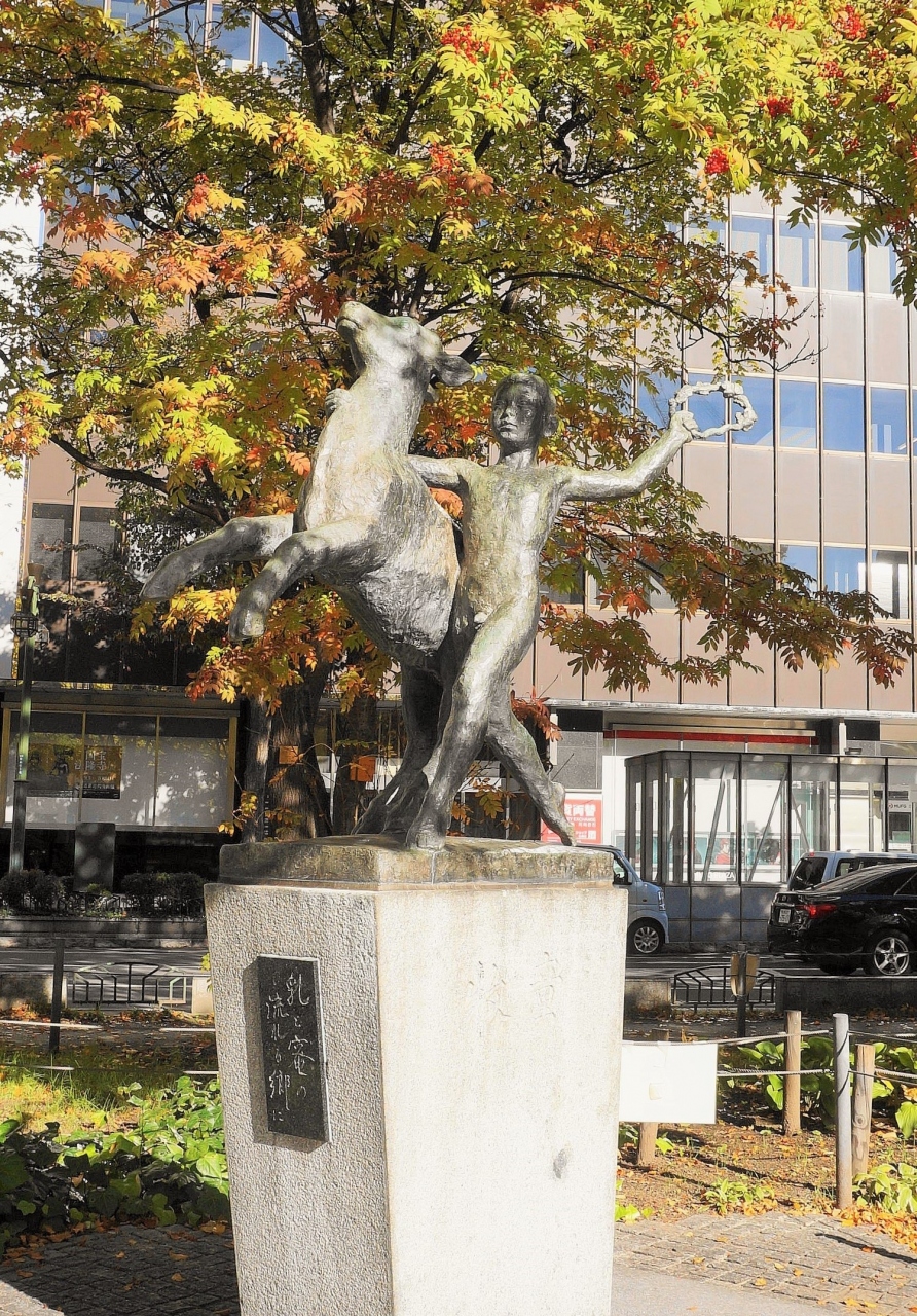 西3丁目に建つ「牧童の像」は、戦後大通公園に置かれた初の作品。
