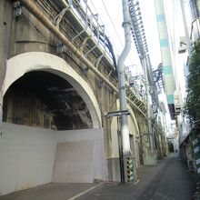 JR神田駅と秋葉原駅の間には多くの高架橋や架道橋が造られています。観光施設とは言えませんが、鉄道ファンや関心がある人には面白いスポットなのかもしれません。この高架橋もその一つで、神田駅北口から秋葉原駅方向に5分ほど行った一八通りに架かっています。コンクリート造りで頑丈な造りに感じられましたが、他の高架橋の下にあるような飲食店などの店はありません。