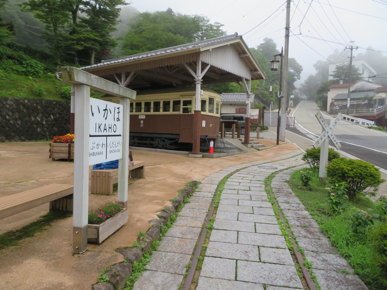明治43年から昭和の31年まで伊香保と渋川間に路面電車が運行されており、その跡地が公園になっています。私用していた電車の展示や路線が残してある公園で、地元の方がこの電車を待つときに近くの温泉に入っていたという話を聞きました。少ないですが駐車場もあります。