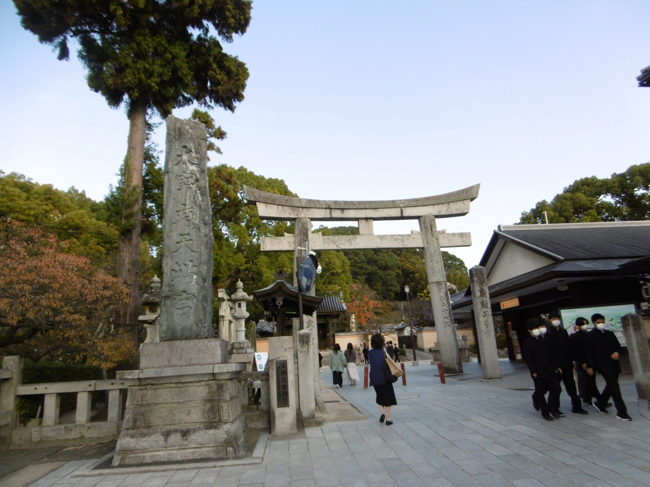 4時近くについたのに、この時期修学旅行生や韓国からの観光客で参道から混んでます。また七五三だったので、本殿では御祈祷している家族連れでいっぱいです。名物の梅ヶ枝餅を食べ歩き。紅葉は見頃までにいまいちの時期でした。