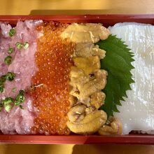 寺泊の市場にあるお店です。外にはテーブルと椅子が置いてあって買ったものをそこで食べられます。海鮮丼と生牡蠣を注文。新鮮で絶品です。お値段もお手頃で食べ歩きにピッタリです。午前中から賑わってるので席は座れないこともあります。