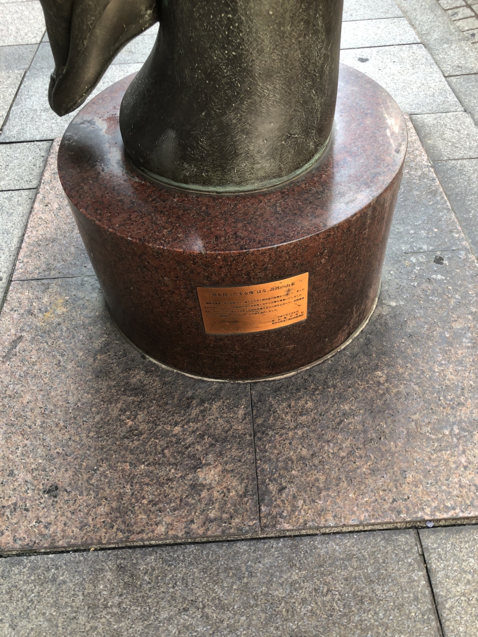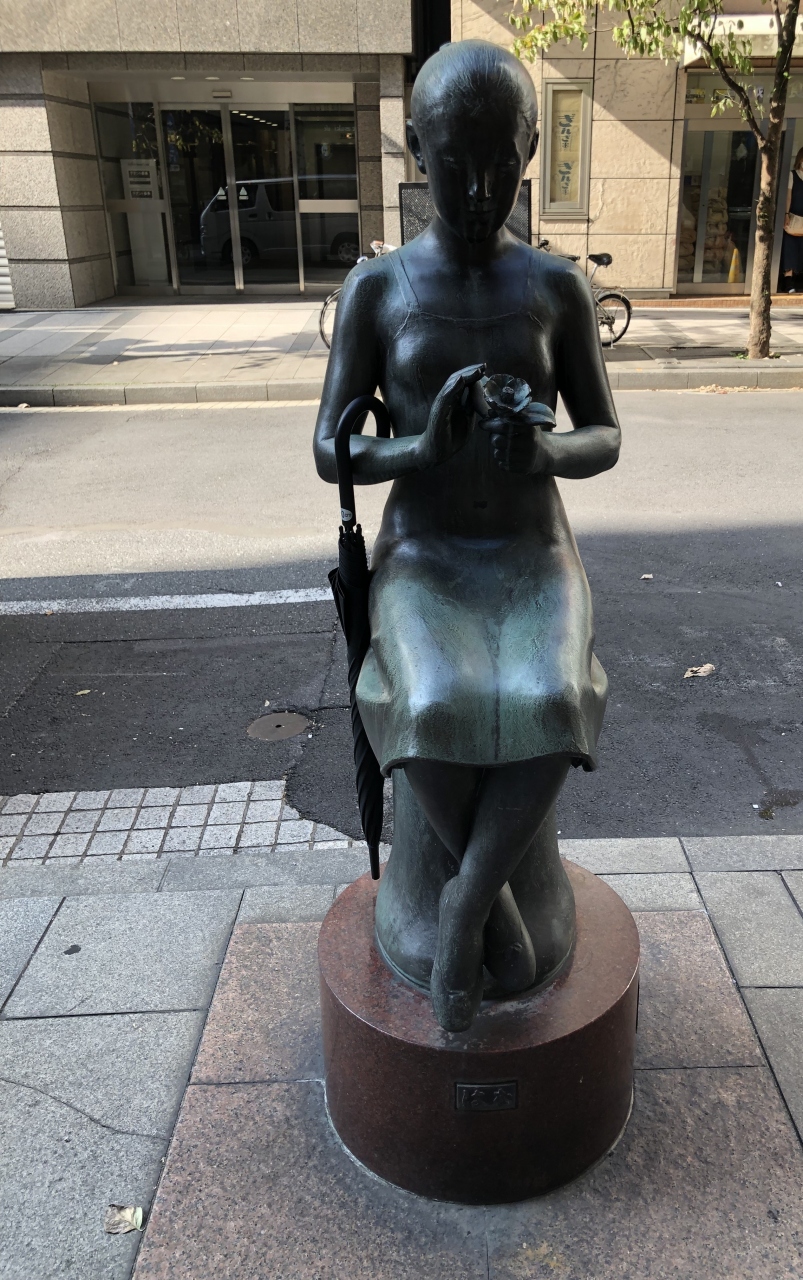 銀座の花椿通りに設置されています。少女が花を持っている銅像で、花椿通りにちなんで、手に持っている花は椿だそうです。碑には設置の由来も記載されていて、設置されたのは意外に新しく平成に入ってからとのことでした。通りにこのような銅像があると、街が華やぎます。