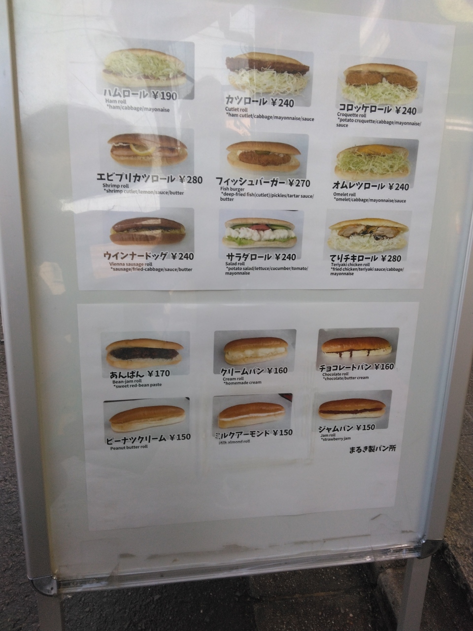 深夜バスで6時に京都駅に到着し、バス一日乗車券を購入して10分ほどで大宮松原に到着。下車してどちらに歩き出すかわからず、通りがかりの女性に聞いたら、お店の行列か見える交差点まで案内してくれた。てっきりその方向に用事があると思ったのに教えてくれた後もと来たほうに戻っていった。朝の忙しい時間になんて親切なのでしょう。感謝です。交差点を渡ってすぐ行列が見えてきました。TVの取材も来ていました。小ぶりのコッペパンに具材が挟まれどれもおいしそうで選ぶのが難しいです。5個買って1000円以内。柔らかく本当においしかったです。