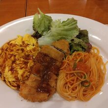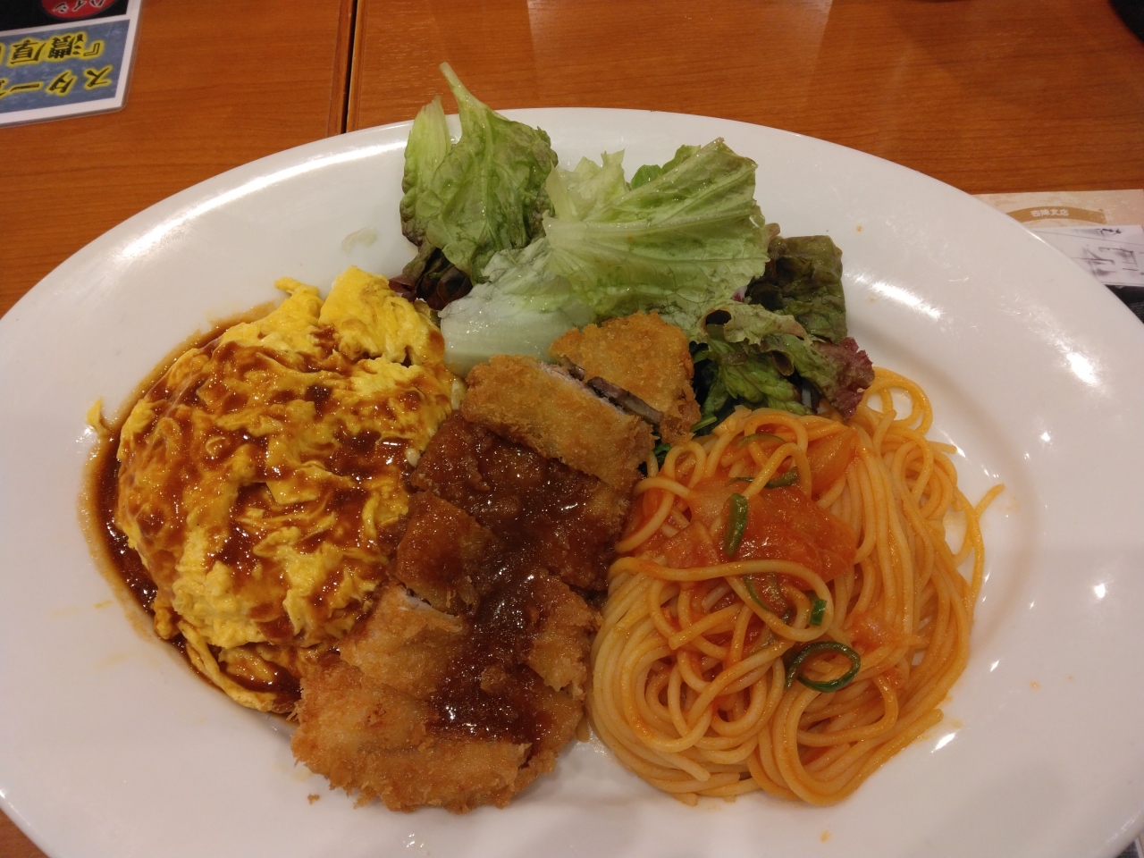 京極スタンドという昭和レトロなお店を目指していったのですが、、同行者のビールの値段が高いという反対にあい、近くにあったショーウインドーのトルコライスに惹かれて入店。旦那はビールとポテトフライも追加注文したけど、トルコライスが先に来てポテトフライがなかなか出てこない。結局ビールをもう一本追加注文してしまった。店側の作戦?にはまった。