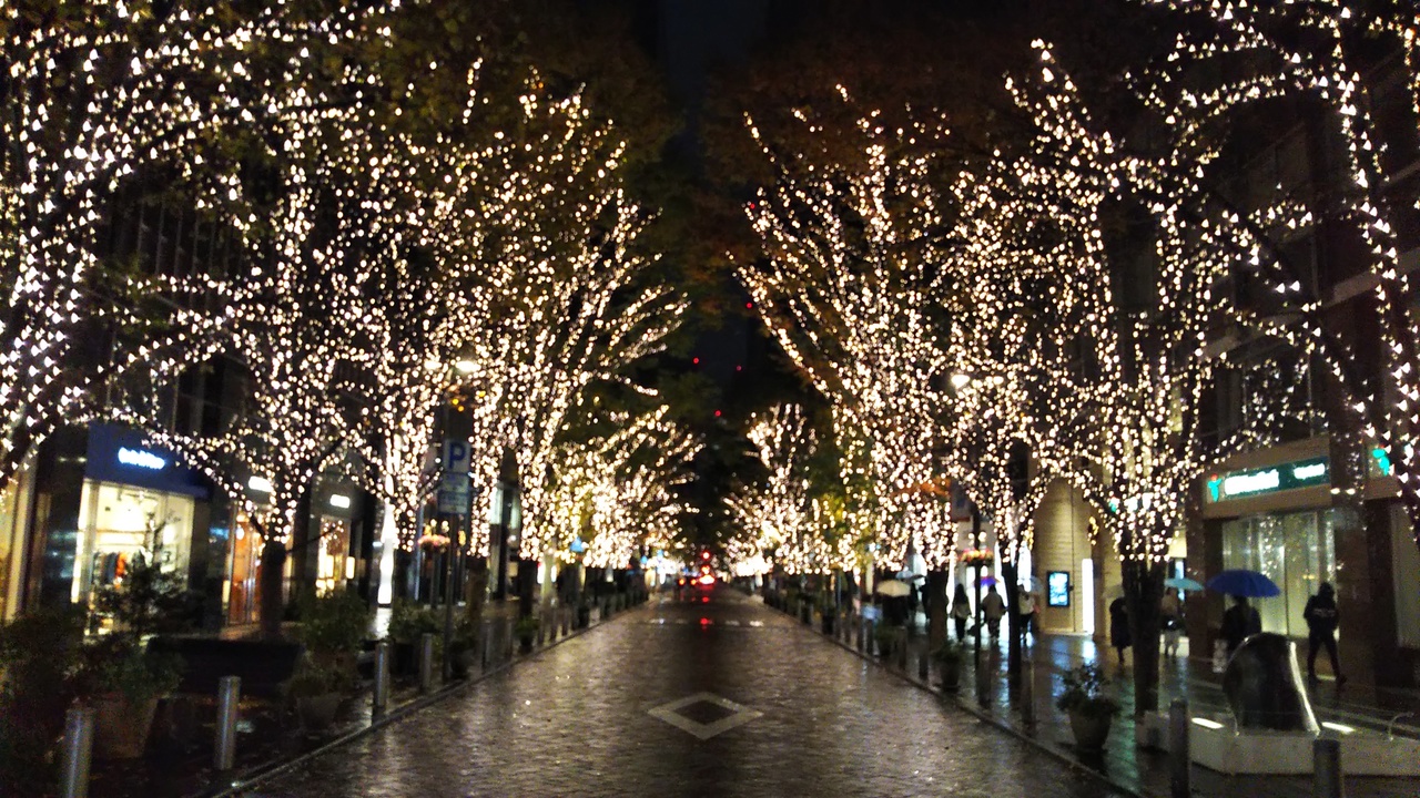 丸の内通りや周辺のショップがシャンパンゴールドに輝き、クリスマスシーズンを物語っている。ショップによってはクリスマスツリーなども展示されていて、賑やかさが増している。地下鉄の駅が近いので、地下鉄を使うと便利である。