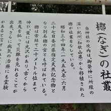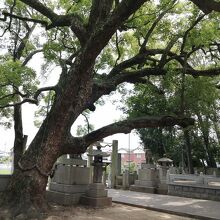 ひときわ目を引くのが境内に根を張る巨木。楠の木かなと思いましたが、由緒板によると「梛(なぎ)」とのこと。古来からよく縁結びや災難除けの木として神社に祀られている木のようです。この木は紀州より移植されたもので香川県の天然記念物に指定されています。枝ぶりがとてもダイナミックです。気になる樹齢は書かれていませんが、かなり見応えがあります。