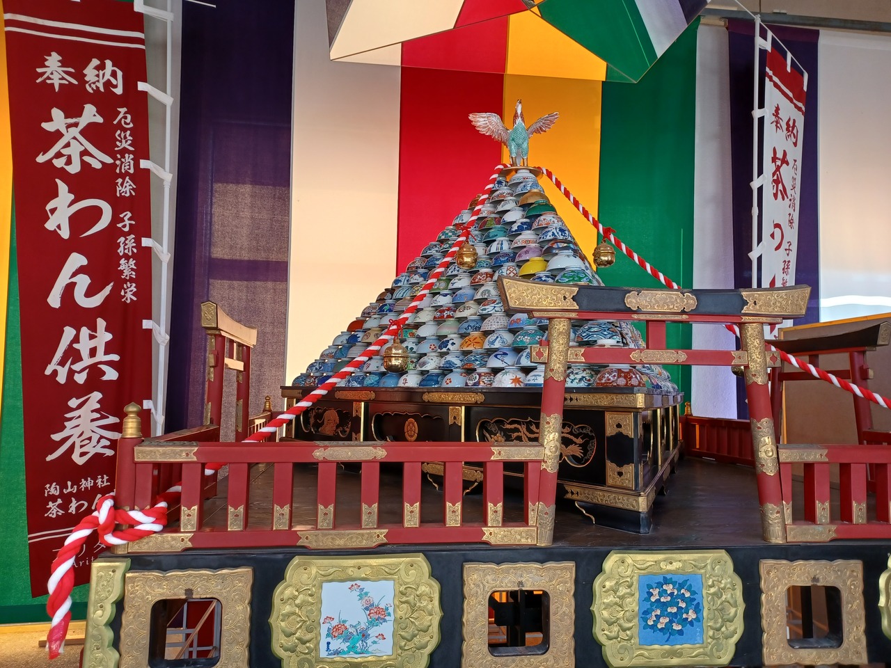 アリタセラのはじっこに、茶碗ををピラミッド状に積み上げた神輿はがあり、圧巻でした。