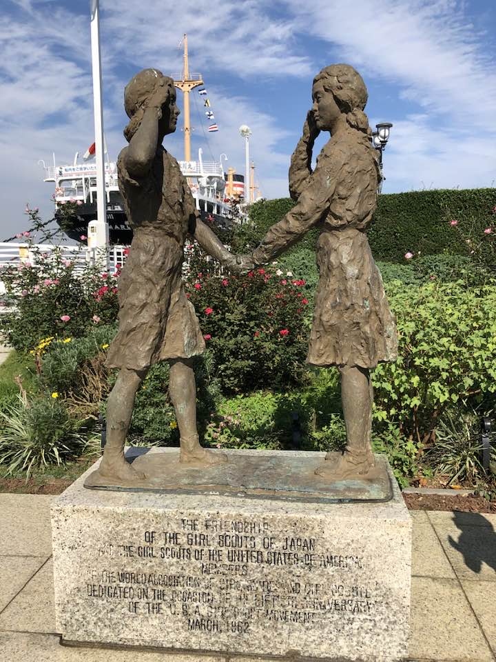 ボーイスカウトは知っていましたが、ガールスカウトがあるとは知りませんでした。調べると2020年に日本のガールスカウト運動は100周年を迎えたそうです。こちらのモニュメントはアメリカガールスカウト50周年とガールスカウト日本連盟の世界連盟加入を記念したもので、1962(昭和37年)3月18日に建てられたとのこと。英語で彫られた説明がまたそれらしいです。一部風化により読みづらくなっており年季を感じます。