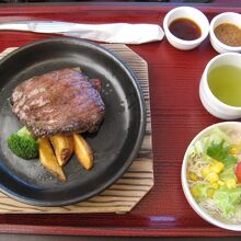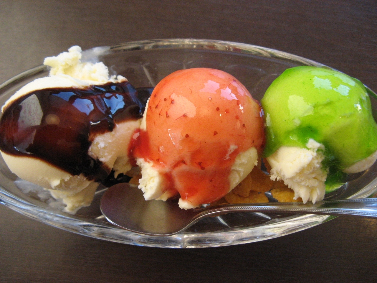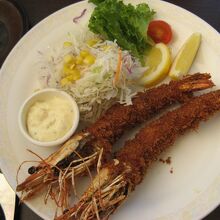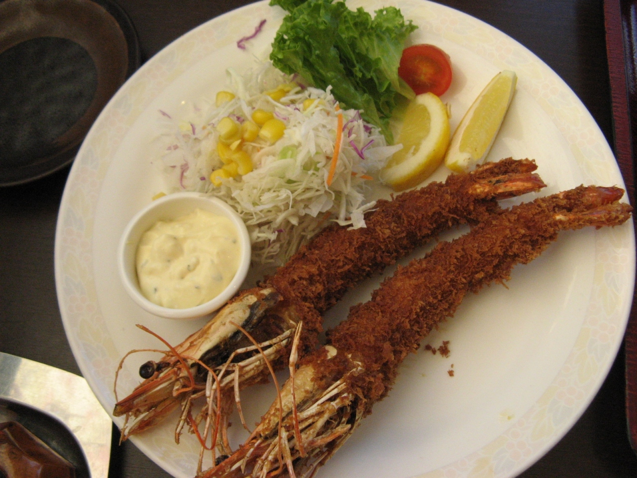 長浜インターチェンジを降りてすぐ、国道8号線長浜バイパスの川崎交差点の角にあるレストランおりひめさん。駐車場が広く結構大きな店構えで普通の椅子席の他に宴会も出来るようです。昔ながらのレストランと言ったような雰囲気ですが、メニューが豊富でお寿司からうどん・そば、丼や和膳、洋食、デザート類までファミレスよりたくさん。特大海老フライ、ハーブ牛ステーキ、3種のアイスなどを頂きました。3種のアイスは見た目も綺麗で美味しかったです。