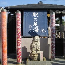 嵐電の嵐山駅のホームにある足湯です。駅の足湯ってとても珍しいと思います。近くのインフォーメーションで200円払うとオリジナルのタオルを渡してくれます。数か月前に利用しましたが、利用客はその時は他に誰もいなくて貸し切り状態でした。のんびり過ごせてよかったです。長い服だったので濡れないようにするのがちょっと大変でした。