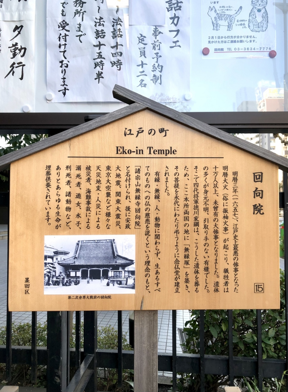 以降、海難事故、天災、人災などの有縁・無縁、人間・動物の隔てなく魂を供養しているのが回向院の特徴です。